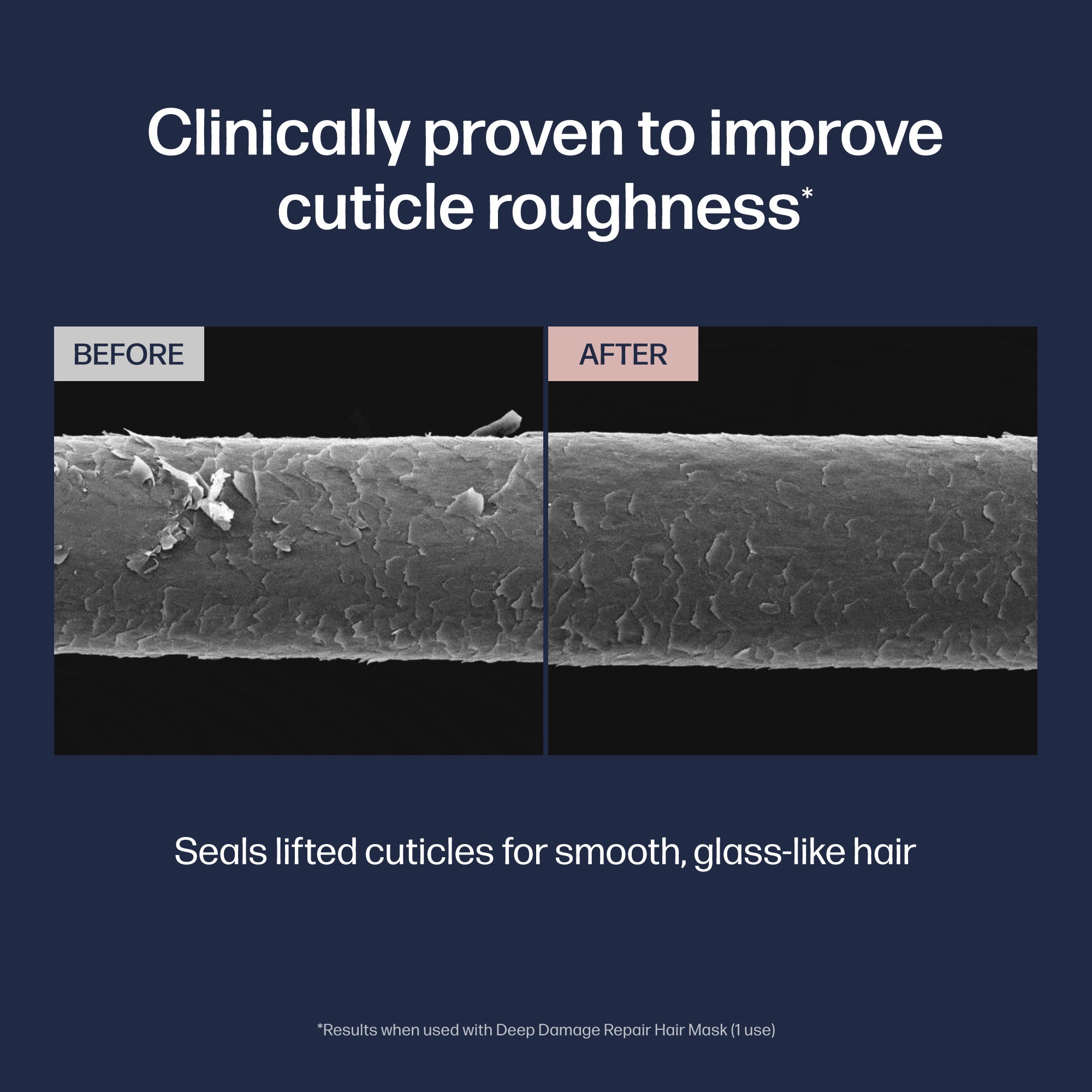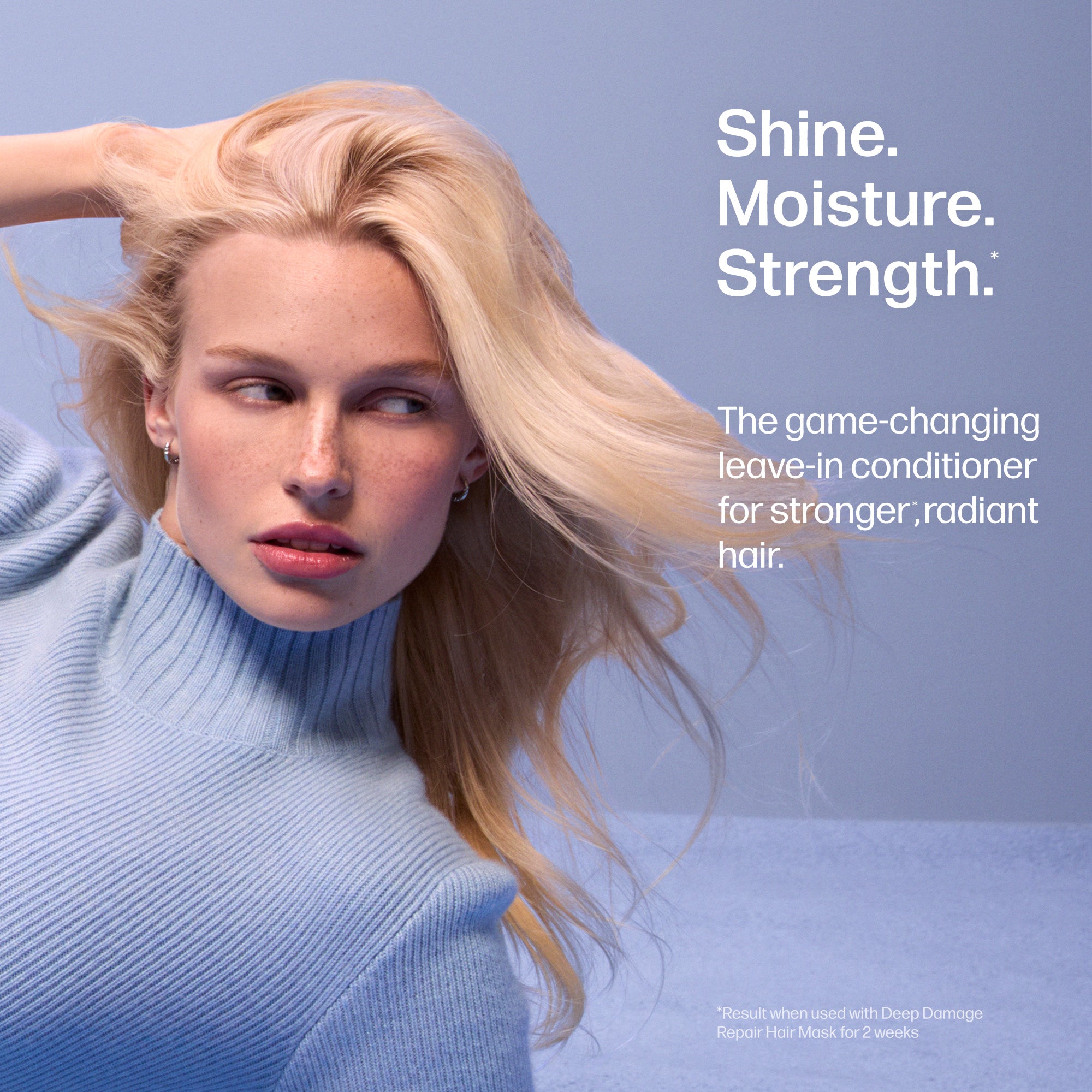 A creamy leave-in conditioner that repairs and hydrates damaged strands, leaving glass-like shine, while providing heat protection up to 455°F.