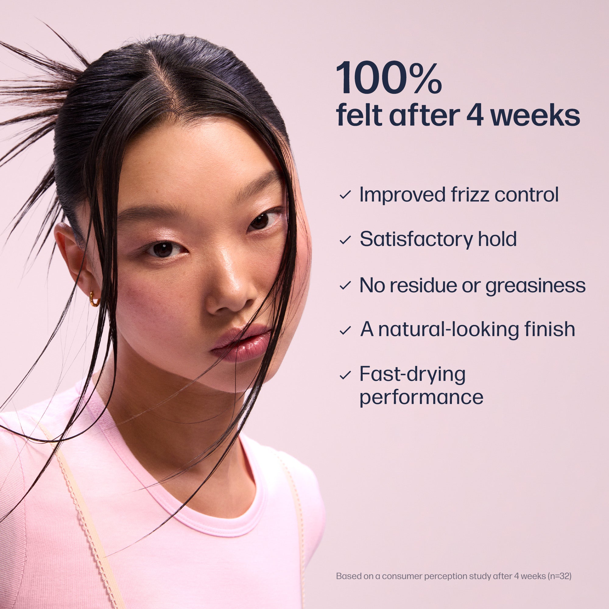 • 100% said their hair felt more controlled and stayed in place